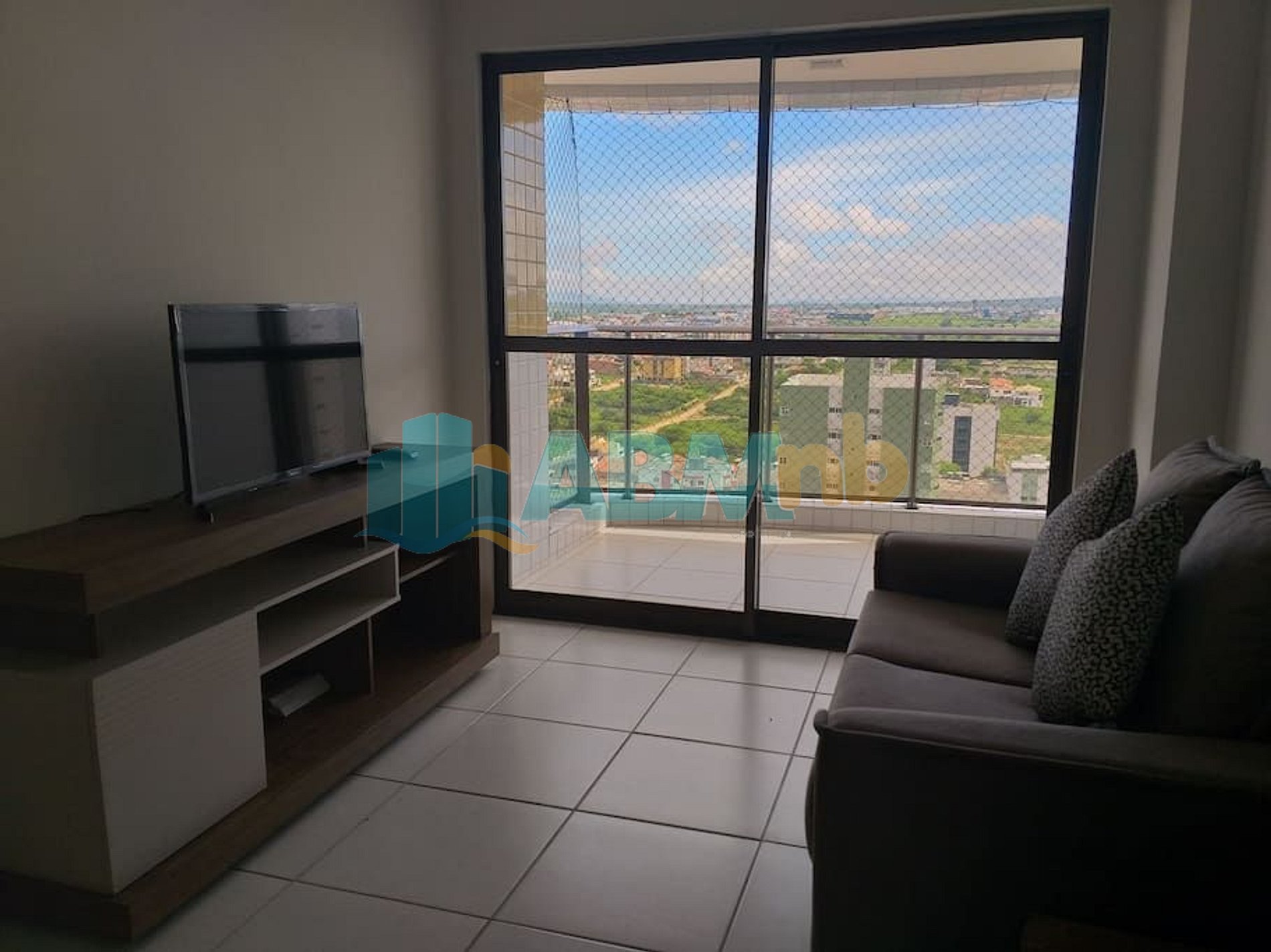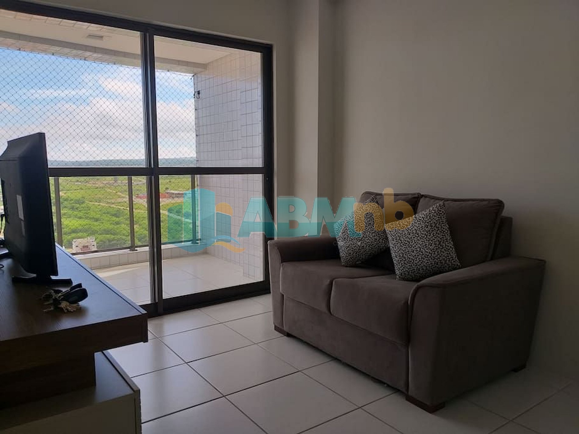 Apartamento medindo 58m2, com mobília. 2 dormitórios sendo 1 suíte com split de 9000btus e outro de solteiro com Split de 9000 BTUs, ambos com guarda roupas, 1 bicama no quarto de solteiro e 1 de casal na suíte, sala com 1 sofá de 2 lugares e rack com smartv de 32", varanda super ventilada, cozinha com fogão, geladeira e microondas, 1 wc social e área de serviço com tanque. Caso haja necessidade de outros itens, podemos negociar. Os hóspedes podem usar todos os equipamentos de lazer, como a piscina, o salão de festas e a academia.